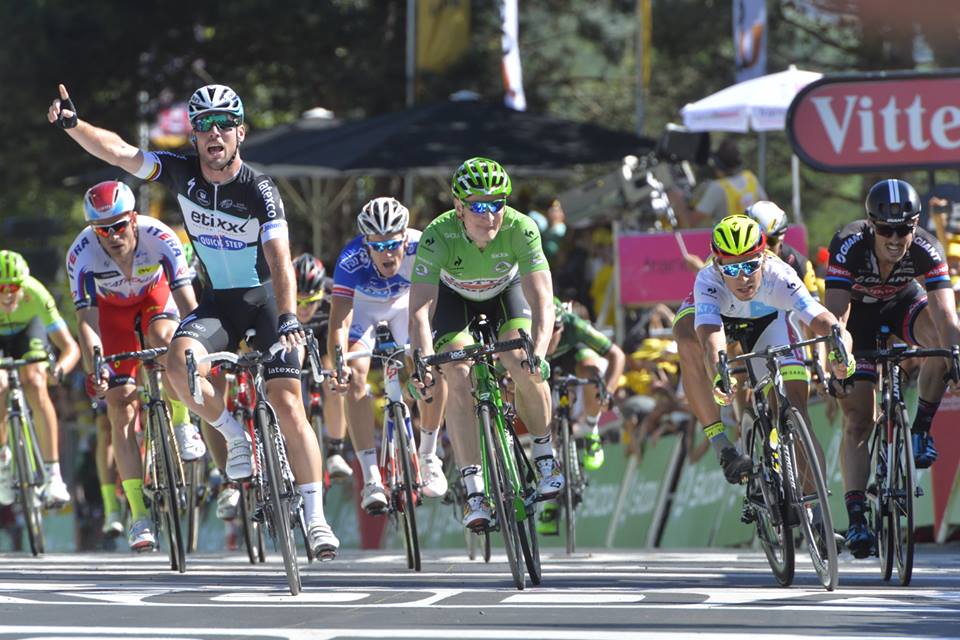 FOUGERES (FRANCIA) – Mark Cavendish (Etixx – Quick Step) ha vinto in volata la settima tappa del Tour de France, da Livarot a Fougeres di 190,5 km. Nello sprint a ranghi compatti il velocista dell’Isola di Man ha battuto il tedesco Andre Greipel (Lotto Soudal) con Peter Sagan (Tinkoff-Saxo) terzo. Lo slovacco grazie anche agli abbuoni è salito al secondo posto nella classifica generale. QuartoJohn Degenkolb (Giant Alpecin), quinto Alexander Kristoff (Katusha). Davide Cimolai (Lampre-Merida) nono è stato il migliore degli italiani al traguardo.