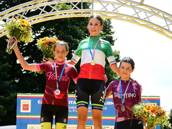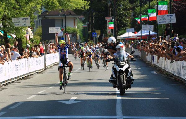 DARFO BOARIO TERME (BS) – La milanese Aurora Mantovani (Sc Busto Garolfo) è la nuova campionessa d’Italia della categoria Donne Esordienti 1° anno. Un’affermazione importantissima premio alla caparbietà e al coraggio della ragazza lombarda, andata all’attacco solitario in salita a poco più di un chilometro dall’arrivo è poi riuscita a mantenere un leggero vantaggio sul gruppo tagliando per prima il traguardo di Darfo Boario Terme. Secondo posto e prima del gruppo, la varesina Sonia Rossetti (Sc Orinese) con la veneta Lara Crestanello (Torre Vicenza Pink Bike) terza (foto Fabiano Ghilardi).