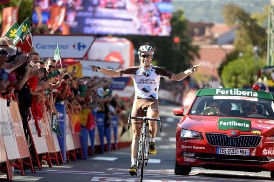 AVILA (SPAGNA) – Il giovane talento francese Alexis Gougeard (AG2R) ha firmato una bella impresa oggi sul traguardo di Avila andando a vincere in solitaria la diciannovesima tappa della Vuelta a España. Si tratta della vittoria più importante della carriera del transalpino già in evidenza in campo internazionale anche tra i dilettanti, la prima vittoria in un Grande Giro. A 40” ha chiuso al secondo posto il portoghese Nelson Oliveira (Lampre-Merida) con Maxime Monfort (Lotto Soudal) terzo.