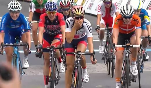 La giovane russa, classe 1995, rimane in avanscoperta per una decina di chilometri prima di essere ripresa. Il secondo scatto porta la firma dell’australiana Katrin Garfoot: per lei una decina di secondi di vantaggio quando si avvicina il quinto passaggio della Libby Hill. Il forcing di Evelyn Stevens (Stati Uniti) sul ciottolato annulla il gap con la battistrada e il gruppo principale, composto da circa 90 unità, torna compatto.