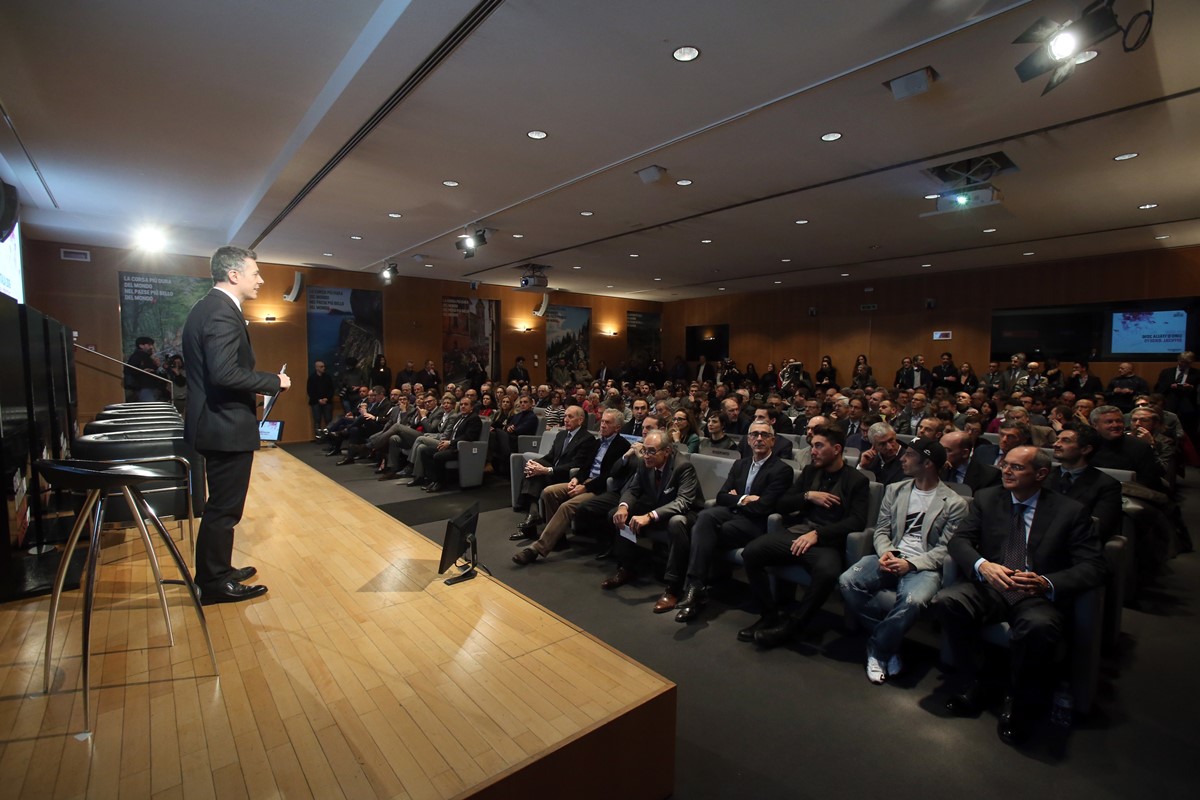 In Sala Buzzati nel cuore di Milano – all’interno di una delle sedi storiche di RCS MediaGroup – sono stati numerosi i rappresentanti di sponsor, media, istituzioni e personaggi legati al mondo del ciclismo, che sono intervenuti alla presentazione.