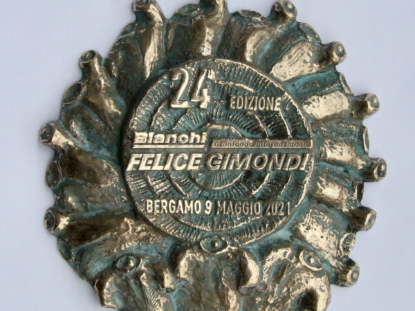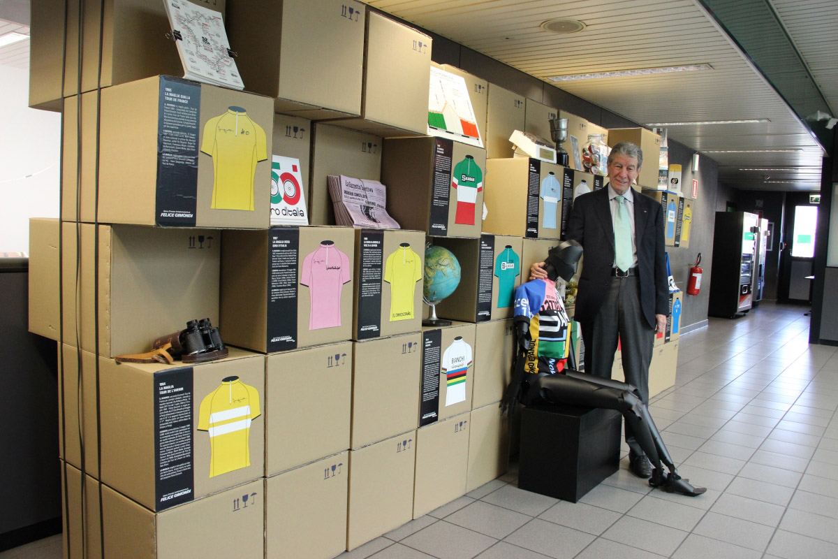 L’organizzatore Giuseppe Manenti ha presentato per l’occasione un’installazione rievocativa di questi venti anni della manifestazione, costruita su scatole di cartone che simboleggiano la memoria storica del campione e della manifestazione a lui dedicata, sulle quale sono state applicate tutte le maglie delle vittorie abbinate ad oggetti. “Mi è piaciuto – ha detto Gimondi – l’abbinamento della maglia del Tour de l’Avenir con un cannocchiale: in effetti ero uno che vedeva lontano. E poi il barattolo di vetro con le biglie dei corridori legato alla storica maglia della Salvarani: è un ricordo che custodirò tra gli oggetti preziosi”.