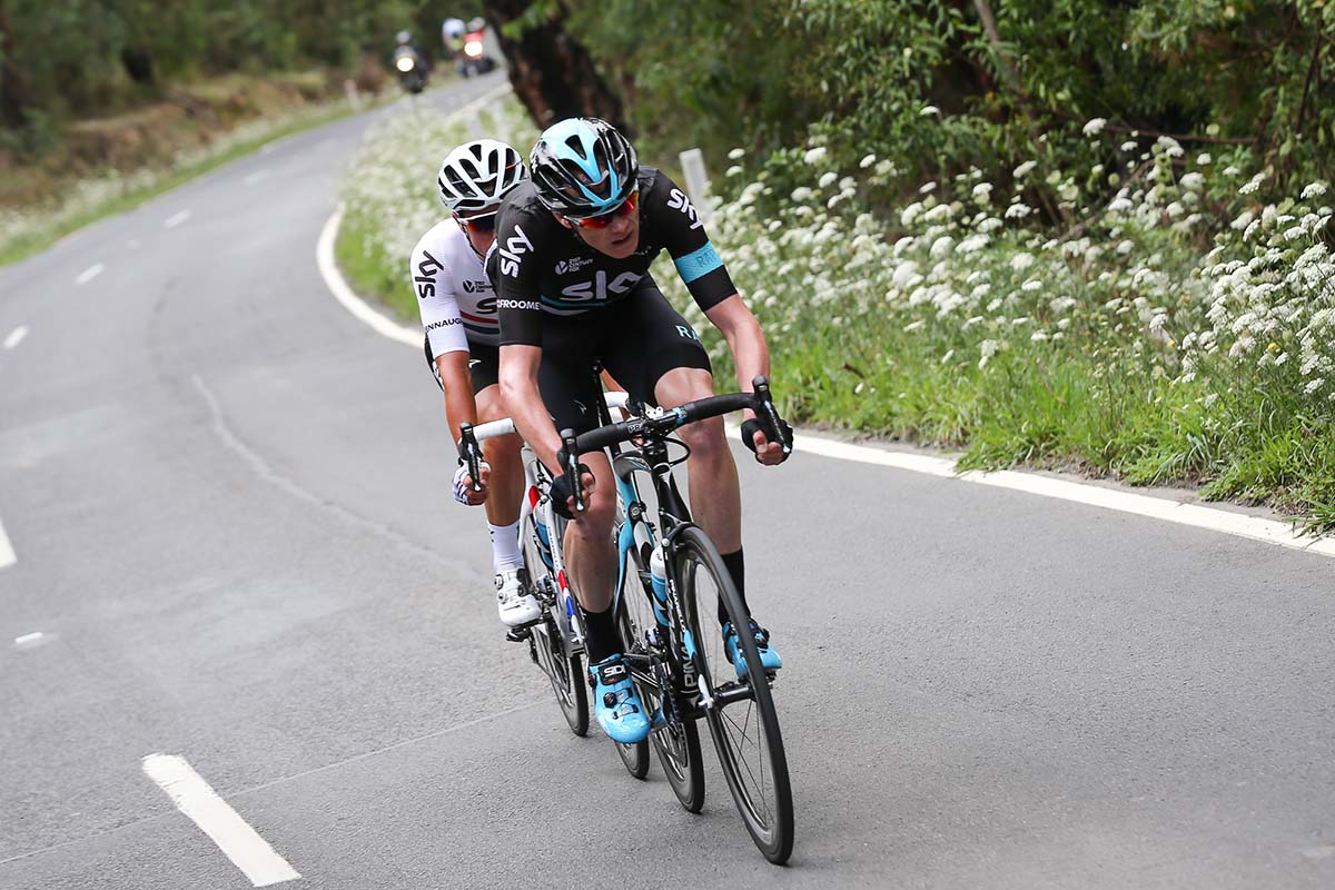HEALESVILLE (AUSTRALIA) – Il Team Sky domina la scena nella prima tappa del Jayco Herald Sun Tour, grazie alla splendida doppietta messa a segno da Peter Kennaugh e Chris Froome. Il campione britannico in carica, già vincitore la scorsa settimana della Cadel Evans Great Ocean Road Race, e l’ultimo vincitore del Tour de France, hanno fatto la differenza sulla salita di prima categoria di Mt. St Leonard, mantenendo il proprio vantaggio negli ultimi 20 chilometri di discesa fino al traguardo di Healesville, dove sono arrivati in parata con Kennaugh che ha preceduto il compagno Froome.