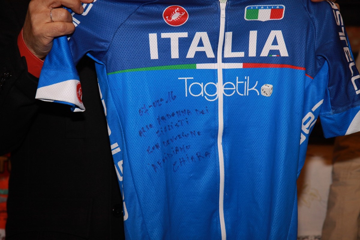 GHISALLO (CO) – “Alla Madonna dei Ciclisti con devozione affidiamo Chiara”. Con queste parole papà Gianni dona al Santuario del Ghisallo la divisa della Top Girls Fassa Bortolo e la maglia azzurra della nazionale italiana che Chiara Pierobon avrebbe indossato per la prima volta ai Campionati Europei di Tartu dello scorso anno.