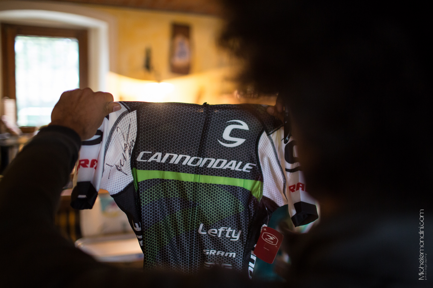 Marco Aurelio Fontana mostra la sua maglia (foto Michele Mondini)