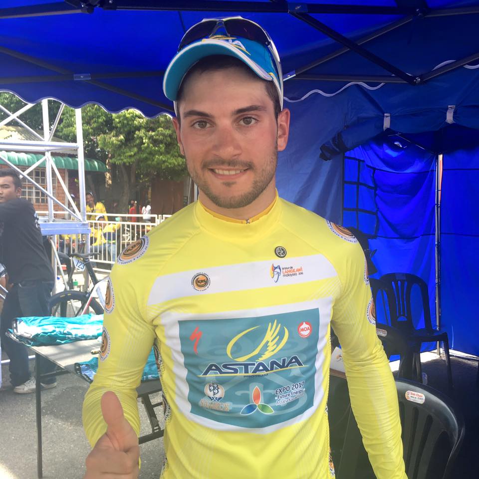 Andrea Guardini in maglia gialla dopo la prima tappa del Tour de Langkawi