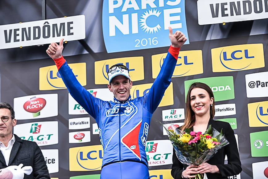 VENDÔME (FRANCIA) – Il francese Arnaud Démare (FDJ) ha vinto di forza la volata che ha deciso la prima tappa della Parigi-Nizza lasciandosi alle spalle, sul traguardo di Vendôme, l’inglese Ben Swift (Team Sky) ed il connazionale Nacer Bouhanni (Cofidis). L’australiano Michael Matthews (Orica-GreenEdge), oggi quinto e vincitore ieri del prologo, resta al comando della classifica generale con tre secondi di vantaggio su Tom Dumoulin (Giant-Alpecin) e quattro secondi avanti a Patrick Bevin (Cannondale).