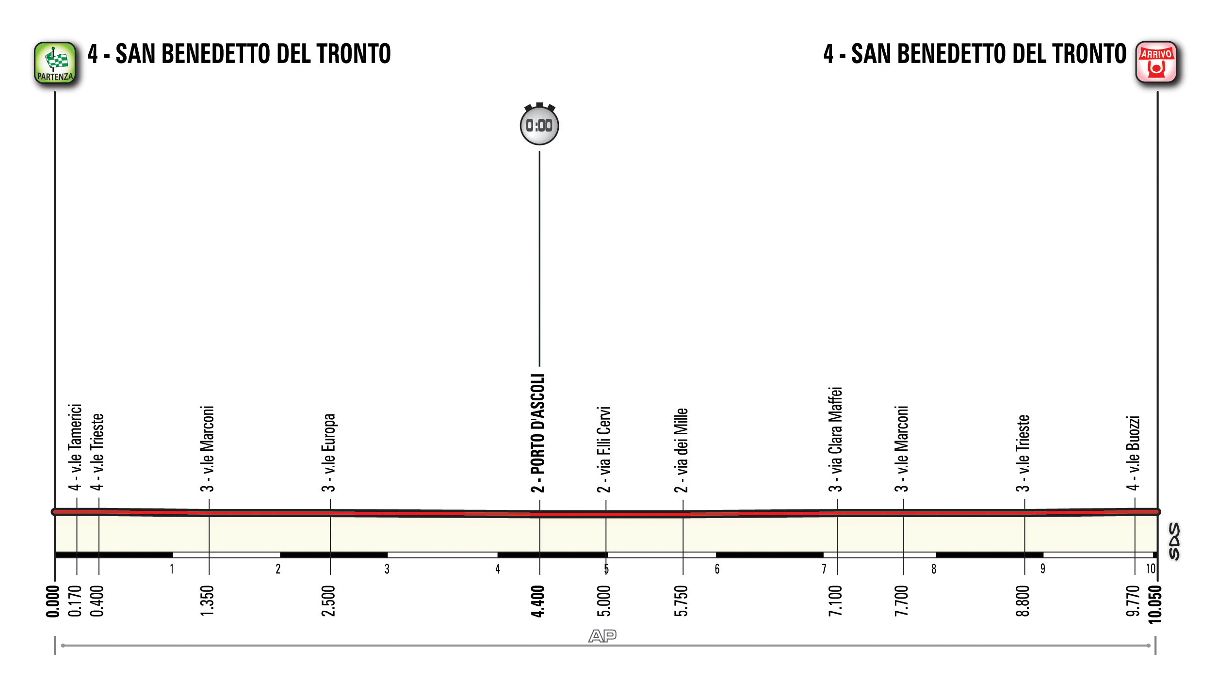 Oggi si correrà l’ultima tappa della Tirreno-Adriatico 2016, una cronometro individuale di 10 chilometri che deciderà chi sarà il vincitore della classifica generale. La tappa parte e arriva a San Benedetto del Tronto, che è la località di arrivo della Tirreno-Adriatico fin dalla sua seconda edizione, nel 1967. Greg Van Avermaet della BMC Racing Team è il primo della classifica generale, dopo che ha vinto la tappa di ieri su Peter Sagan. Van Avermaet ha un vantaggio di 7 secondi su Zdenek Stybar, vincitore della seconda tappa, e 8 secondi su Peter Sagan. In quarta posizione della generale c’è il giovane lussemburghese Bob Jungels che quest’anno ha già vinto al Tour dell’Oman ed è il più forte a cronometro dei primi quattro. Jungels deve però recuperare un ritardo di 21 secondi da Van Avermaet e sembra improbabile che riesca a dare al belga più di un secondo a chilometro. Il vincitore della Tirreno-Adriatico 2016 quindi dovrebbe essere uno tra i primi tre della classifica generale. Tra i favoriti per la vittoria di tappa invece ci sono Fabian Cancellara, Tony Martin e il campione del mondo a cronometro Vasil Kiryienka.