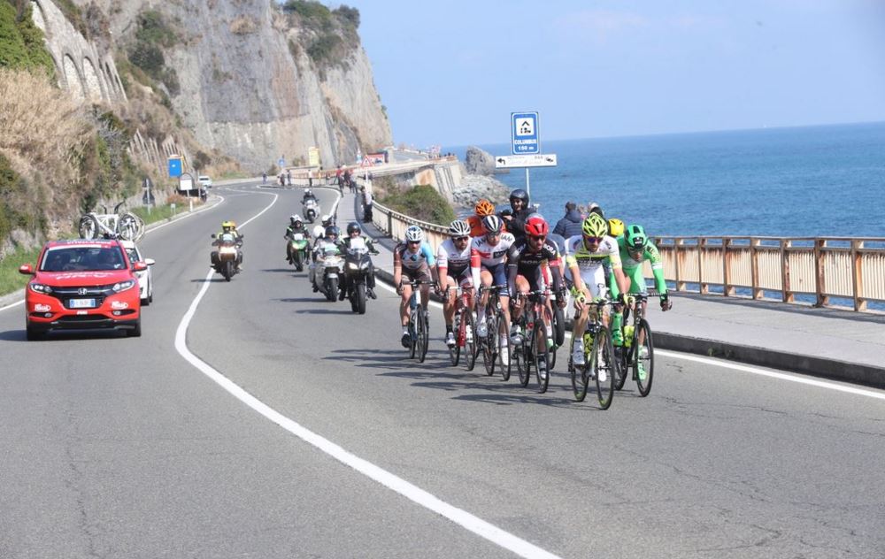 Nel gruppo, intanto, si verificano numerose cadute. Tra chi ha la peggio c’è Federico Zurlo della Lampre-Merida (sospetta frattura della clavicola) e più avanti anche Michael Metthews (Orica-GreenEDGE) ed Arnaud Demare (FDJ) che finiscono a terra e con l’aiuto dei compagni sono costretti a rincorrere per rientrare nel gruppo appena prima dell’inizio della salita della Cipressa.