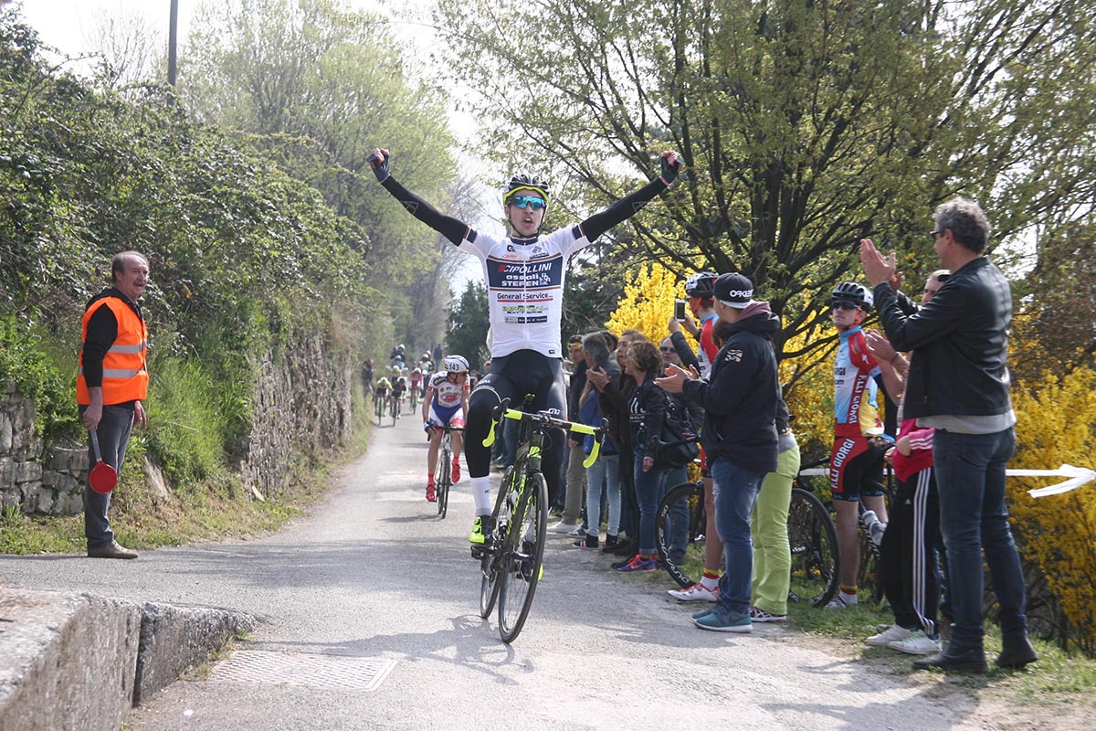 Sebastiano Mantovani, grazie a una fuga a lunga gittata, si è preso il 42° Trofeo Comune di Gussago, classica per la categoria juniores conclusasi come ogni anno sullo strappo della Santissima. Il veneto della Cipollini Assali Stefen ha preceduto Matteo Baseggio e Cristian Rocchetta, due dei 18 atleti con cui ha animato l’attacco decisivo già a 63 km dal traguardo.