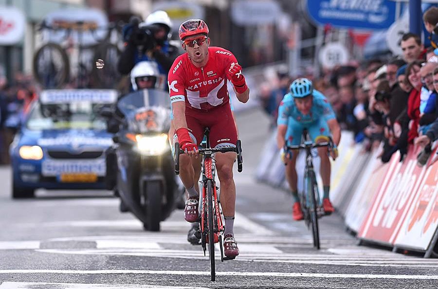 ZOTTEGEM (BELGIO) – Questa volta Alexander Kristoff non ha atteso la volata, ma è andato all’attacco per vincere. Il norvegese della Katusha ha risposto all’attacco sferrato dalla coppia dell’Astana formata da Alexey Lutsenko e Lieuwe Westra e poi li ha battuti in volata facendo sua la prima tappa della Tre Giorni di La Panne. Al termine di questa prima giornata, corsa sotto la pioggia e tra le colline delle Fiandre, Kristoff – che è anche il vincitore uscente – ha indossato la prima maglia di leader della competizione.