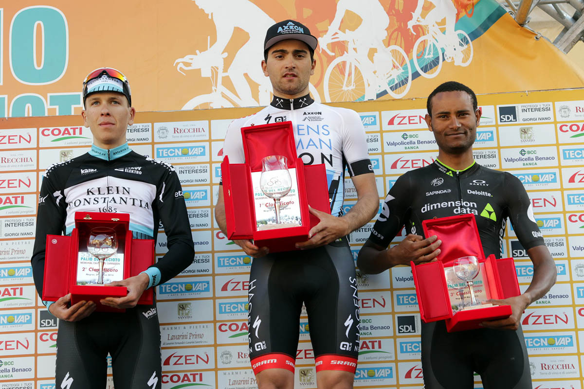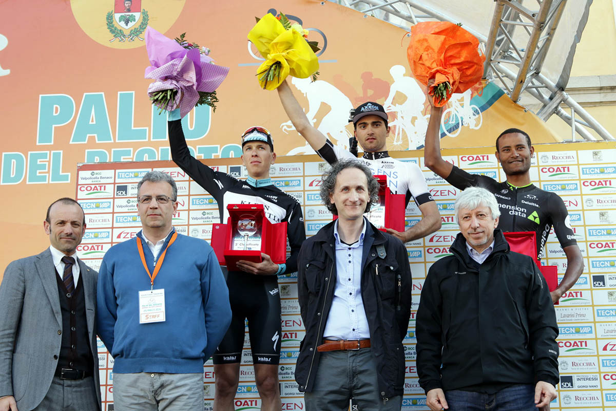 A poco più di 2 chilometri dall’arrivo Guerreiro accusa anche un problema meccanico, ma rientra velocemente nella scia dell’avversario. Ormai è fatta, i due vanno a giocarsi la vittoria in volata. Il ceco Schlegel esce per primo dall’ultima curva, ma la progressione del portoghese Guerreiro è micidiale: il Palio del Recioto 2016 è suo. Terza piazza per l’eritreo Amanuel Gebreigzabhier (Dimension Data), che diventa il primo africano della storia a salire sul podio del Palio del Recioto. Quarto posto per il varesino Edward Ravasi del Team Colpack, il migliore degli italiani.
