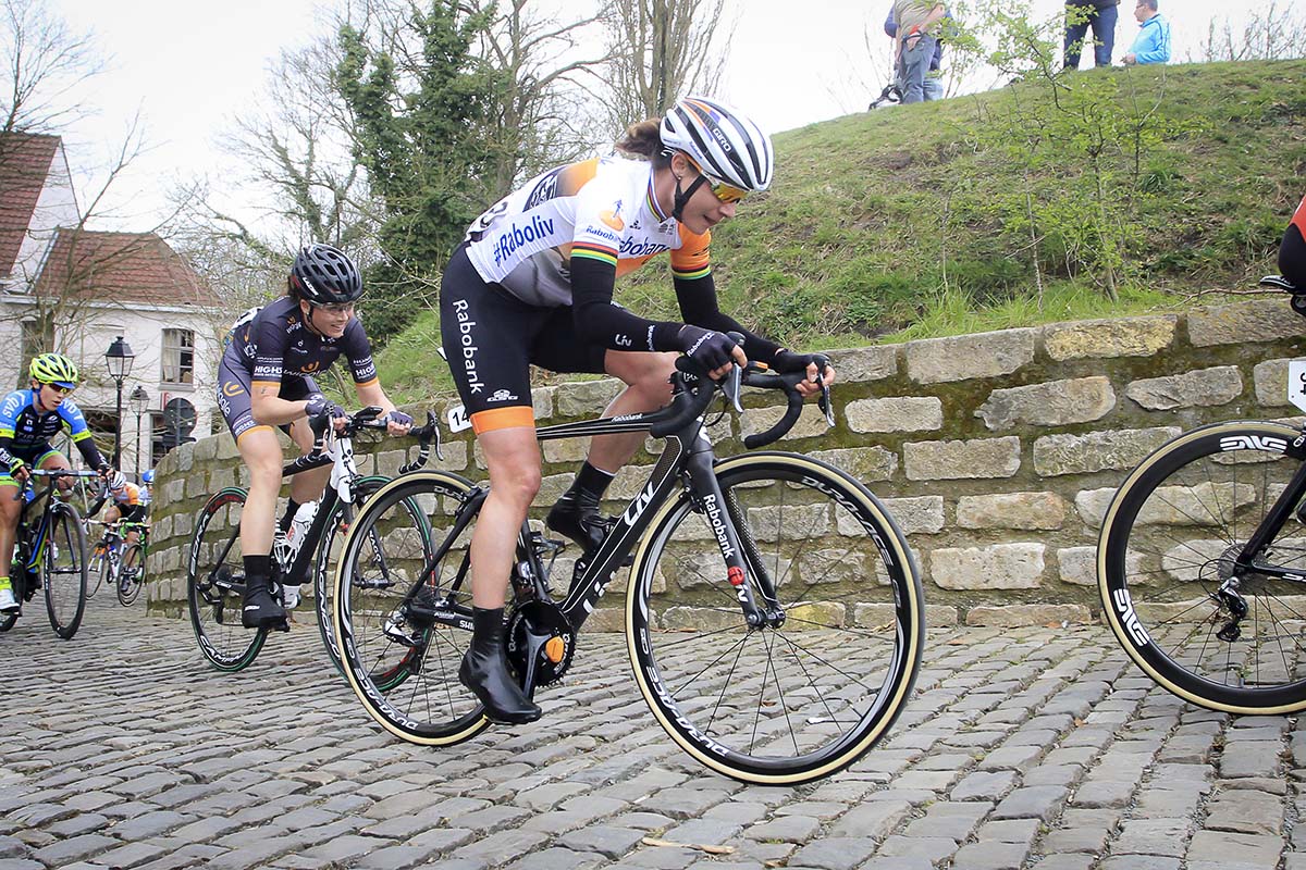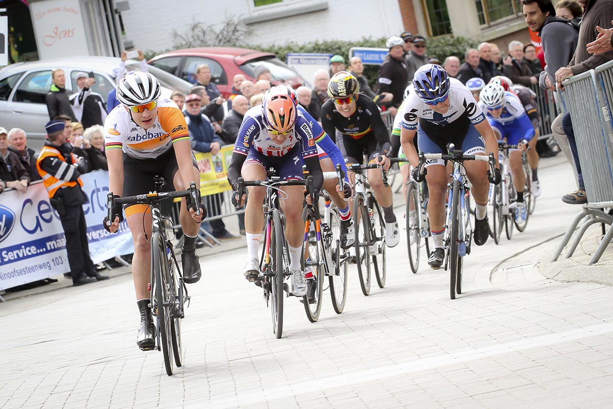 La gara misurava 122,4 chilometri e presentava un percorso impegnativo con otto passaggi sul pavé. All’attaco si è portato un gruppo interessante che comprendeva Ferrand-Prevot (Rabo Liv), Guarnier, Elisa Longo Borghini (Wiggle HIgh5), Ellen Van Dijk (Boels-Dolmans) e van der Breggen con Niewiadoma, entrambe della Rabo Liv. Sono state però riprese dal gruppo principale nel finale dove allo sprint ha prevalso la Vos.