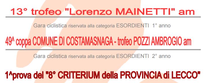 A seguire la 48/a Coppa Comune di Costa Masnaga (categoria Esordienti 2°anno – km 41,40) che andrà alla società del vincitore, mentre il Trofeo Pozzi Ambrogio andrà alla società con più piazzamenti.