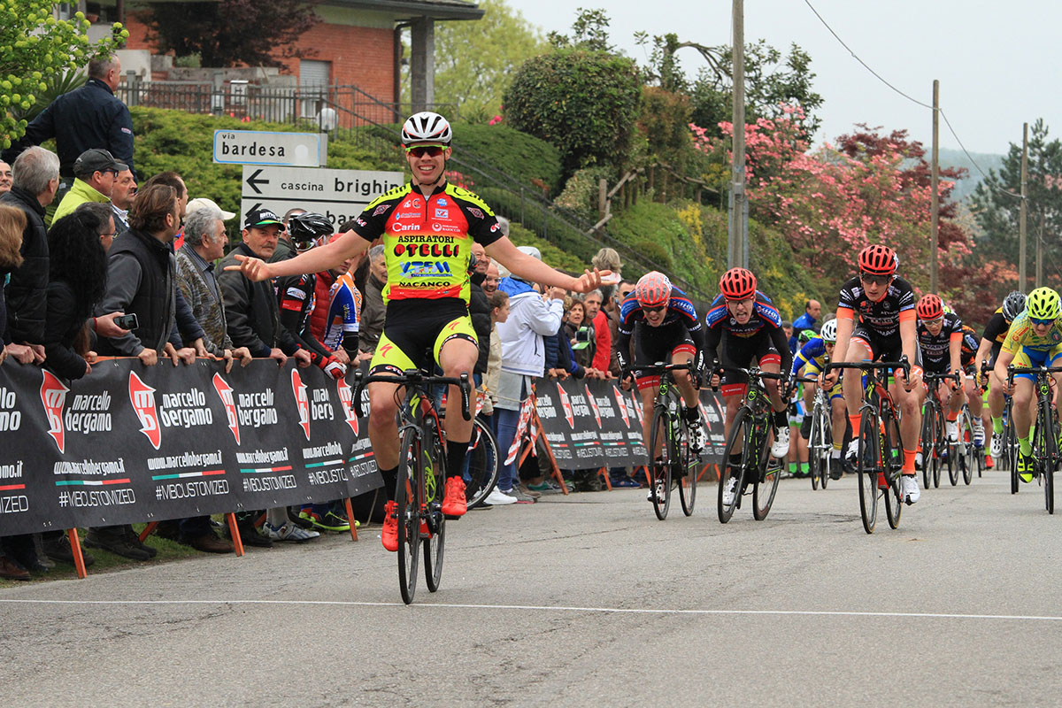 Il corridore della Aspiratori Otelli Vtfm Carin Nacanco Baiocchi Cadeo Carpaneto ha vinto in maniera nettissima la volata di gruppo lasciandosi alle spalle Davide Ferrari della GB Junior Team e terzo Tommaso Bramati dell’Us Biassono.