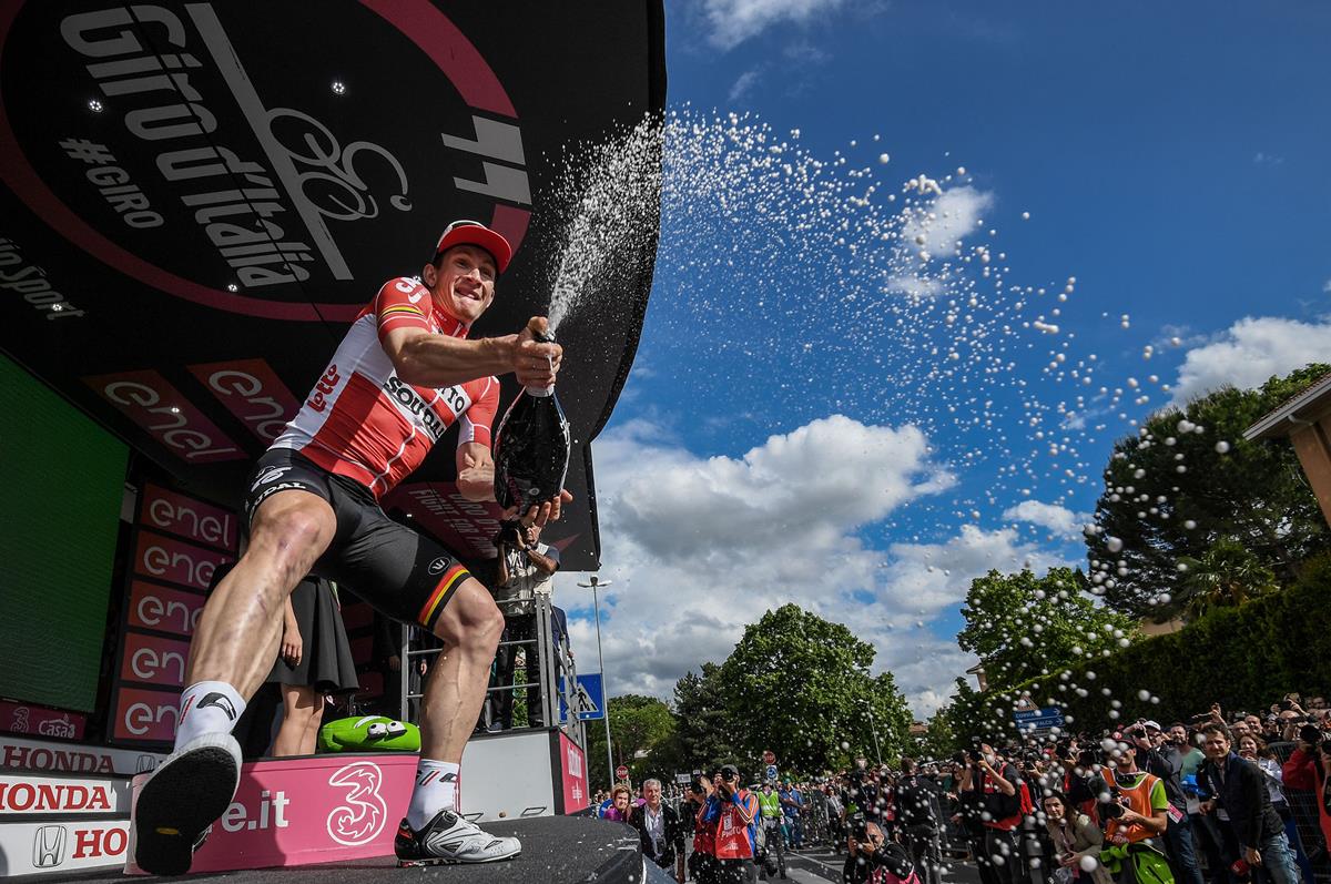 Tom Dumoulin tiene salda la maglia rosa con 26” su Jakob Fuglsang (Astana) e 28” su Ilnur Zakarin (Katusha). Vincenzo Nibali (Astana) è a 47”, 6 in più di Alejandro Valverde (Movistar).
