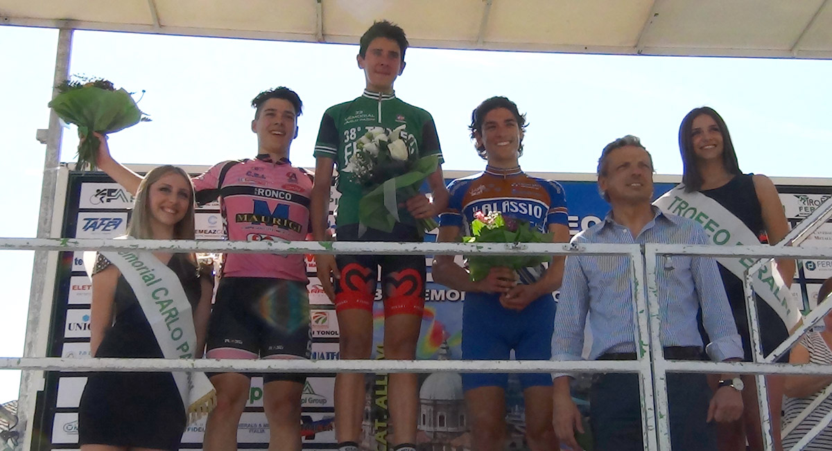 LONATO DEL GARDA (BS) – Il laziale Antonio Tiberi dell’Olimpia Valdarnese con un colpo da finisseur vince il 38° Trofeo Feralpi – 33° Memorial Carlo Pasini, classica del calendario della categoria Allievi. Gruppo dei migliori sorpreso all’ultimo chilometro quando Tiberi se ne è andato risultando imprendibile per tutti. Vince la volata dei battuti, per il secondo posto, il bresciano Tomas Trainini del Gs Ronco Maurigi, davanti al ligure Samuele Manfredi (Uc Alassio), ancora sul podio come un anno fa. Per Tiberi, quasi 16enne romano di Gavignano, si tratta della quarta affermazione della stagione.