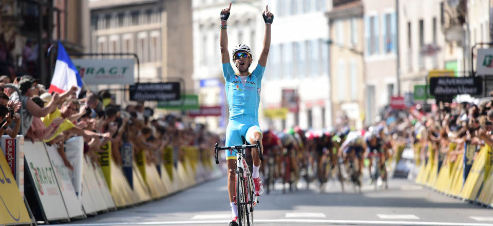 TOURNON-SUR-RHÔNE (FRANCIA) – Fabio Aru (Astana Pro Team) ha vinto la terza tappa del Criterium du Dauphine (2.UWT, Francia) da Boër-sur-Lignon a Tournon-sur-Rhône di 182 chilometri. Fabio Aru faceva parte di gruppo di corridori all’inseguimento del fuggitivo di giornata Tony Martin, che è stato raggiunto. Quando mancavano 11 chilometri Aru ha attaccato e nonostante le squadre degli uomini più veloci hanno tirato per colmare il gap, negli ultimi due chilometri è riuscito a mantenere un vantaggio di 15 secondi che gli ha permesso di vincere in solitaria. Alexander Kristoff (Team Katusha) ha vinto la volata del gruppo su Niccolò Bonifazio (Trek-Segafredo).