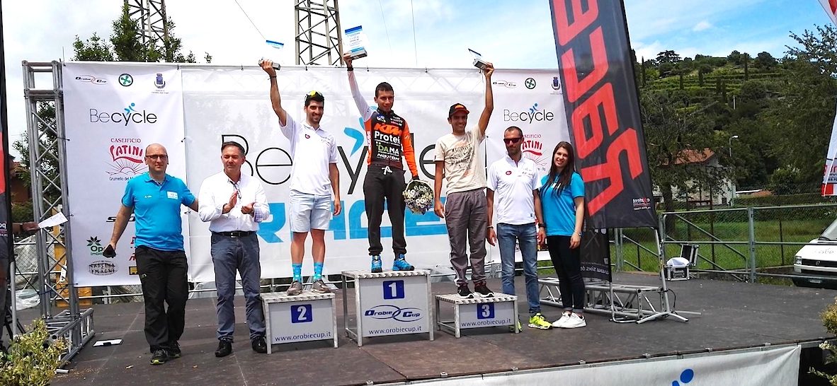 Altra discesa ed altro colpo di scena con Lazzaroni vittima anche lui di una foratura prima di giungere al centro abitato di Foresto Sparso, a soli 10km dal traguardo, lasciando così strada libera a Botero che lungo gli adrenalinici single track finali ha potuto amministrare in sicurezza giungendo in solitaria sotto lo striscione d’arrivo di Carobbio Degli Angeli fermando il cronometro sul tempo di 1h 44’ e 31”. Mentre Lazzaroni perdeva inesorabilmente tempo e posizioni nel tentativo di riparare la foratura è stato quindi il gruppetto degli inseguitori a giocarsi allo sprint i due gradini del podio rimasti. Una lunga volata vinta dall’atleta di casa Mattia Finazzi (Becycle Team) che riesce a mettere la ruota davanti al colombiano Marcos Osorio Bermudez (KTM Protek) terzo, Ivan Testa (TRT) quarto e Stefano Moretti (Pavan) quinto.