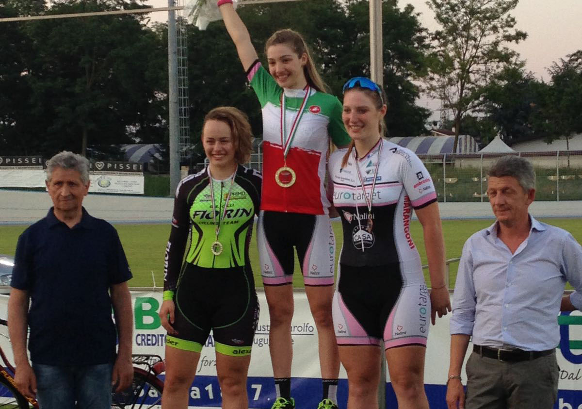 Nella prova di Velocità Donne Junior Martina Fidanza si è imposta su Gloria Manzoni (Cicli Fiorin) e la compagna di squadra Alessia Pilani.