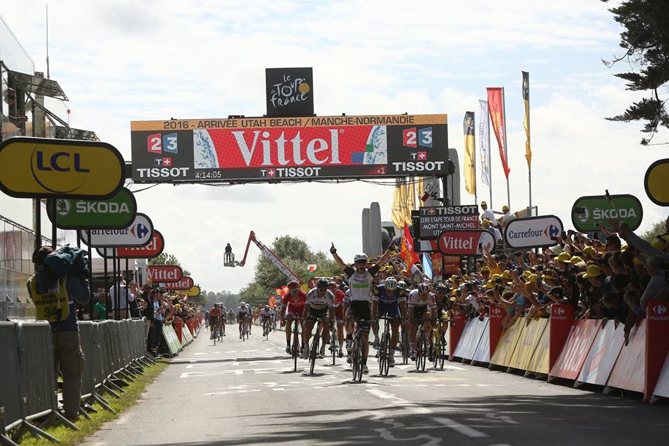 UTAH BEACH (FRANCIA) – La prima maglia gialla del Tour de France 2016 è di Mark Cavendish. Ma si tratta della prima ed emozionante maglia gialla della carriera per il velocista britannico della Dimension Data che oggi ha vinto nettamente il primo sprint sul traguardo di Utah Beach.