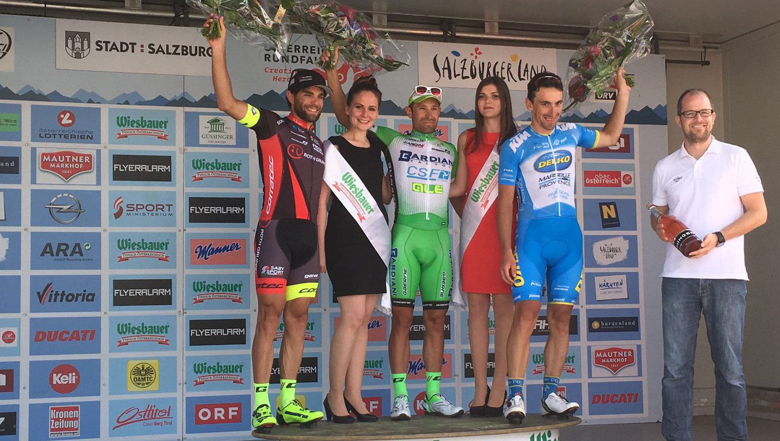 SALZBURG (AUSTRIA) – Arriva dal Giro d’Austria la quarta vittoria stagionale della Bardiani-CSF ed a regalarla è stato Nicola Ruffoni. Il corridore bresciano è stato il più veloce nella prima tappa della corsa, da Innsbruck a Salzburg di 186 km, superando in volata Andrea Pasqualon (Team Roth) e Yannick Martinez (Delko Marseille KTM). Grazie all’ottimo quarto posto di ieri nel prologo, Ruffoni ha conquistato anche la leadership della generale (5” su Pasqualon e 7” su Clarke) e della classifica a punti (3 punti di vantaggio su Pasqualon e 5 su Vanotti).