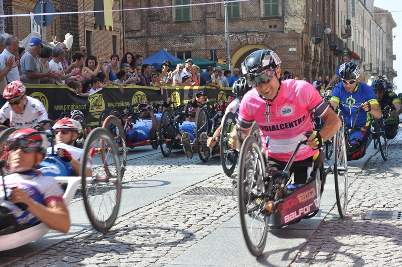FOSSANO (CN) – Diego Colombari vincitore indiscusso della tappa più dura e tecnica di tutto il Giro d’Italia di HandBike e maglia rosa per la sua categoria, ha concluso i 9 giri in 1 h e 12 minuti, seguito a ruota dal campione del mondo paralimpico Vittorio Podestà e da Fabrizio Bove. La tappa di Fossano di sabato 9 luglio 2016 è stata un vero successo per casa P.A.S.S.O.