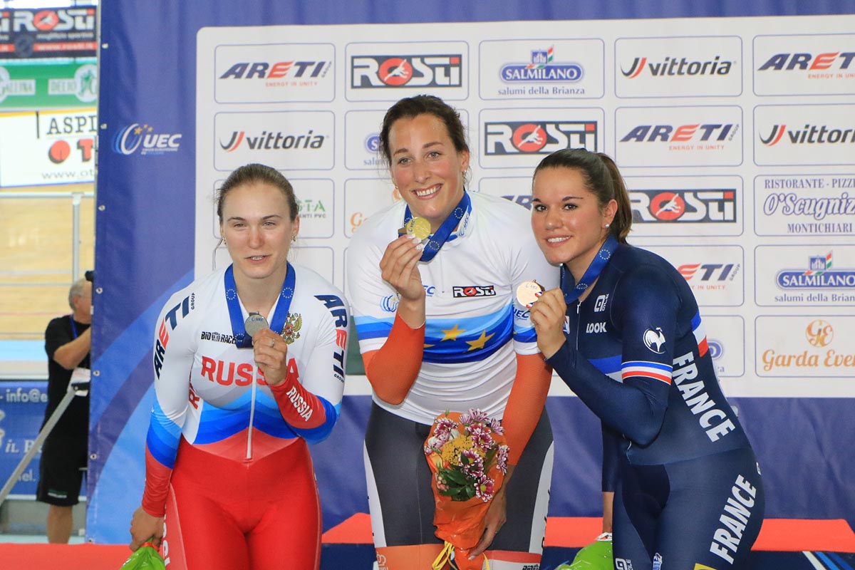 MONTICHIARI (BS) – La piemontese Elisa Balsamo è la nuova campionessa europea della specialità Omnium. Per l’atleta della Valcar-PBM si tratta della seconda medaglia d’oro nella rassegna continentale in corso di svolgimento al Velodromo di Montichiari, dopo che lo scorso martedì aveva conquistato il gradino più alto del podio con le compagne azzurre del quartetto anche nell’Inseguimento a squadre.