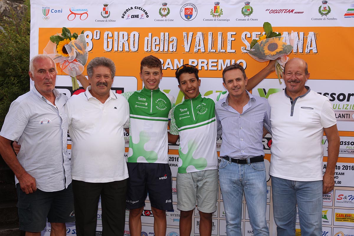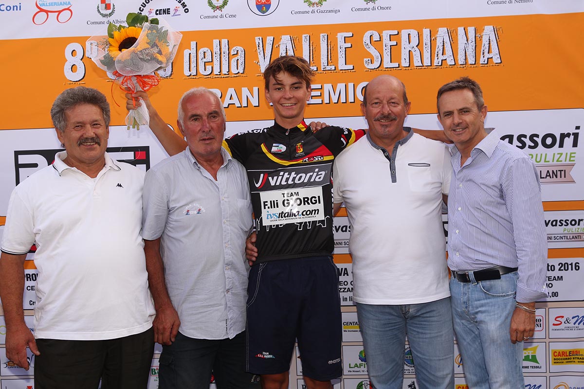 La Cene-Altino era anche prova conclusiva del Trofeo dello Scalatore, nuovo circuito introdotto dal Comitato Lombardo nel calendario Juniores quest’anno. A vincere la classifica finale è stato lo stesso Alessandro Covi (Team Giorgi), premiato dai consiglieri regionali Fabio Perego e Raffaello Viganò e dal tecnico regionale Giovanni Riva. Seconda posizione finale per Aldo Caiati del Team LVF, terzo Andrea Bagioli (Canturino 1902) che ha indossato la maglia bianco-verde di miglior giovane. La classifica di società se l’è aggiudicata il Team F.lli Giorgi.