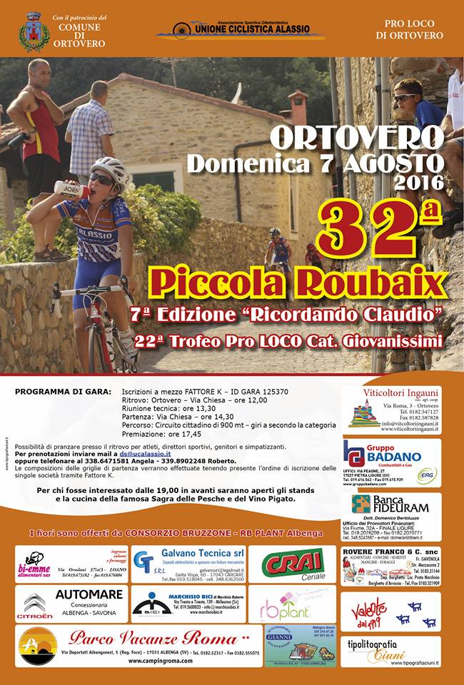 ORTOVERO (SV) – Domenica 7 agosto a Ortovero (Savona) andrà in scena la 32/a Piccola Roubaix per la categoria Giovanissimi organizzata dall’Uc Alassio.