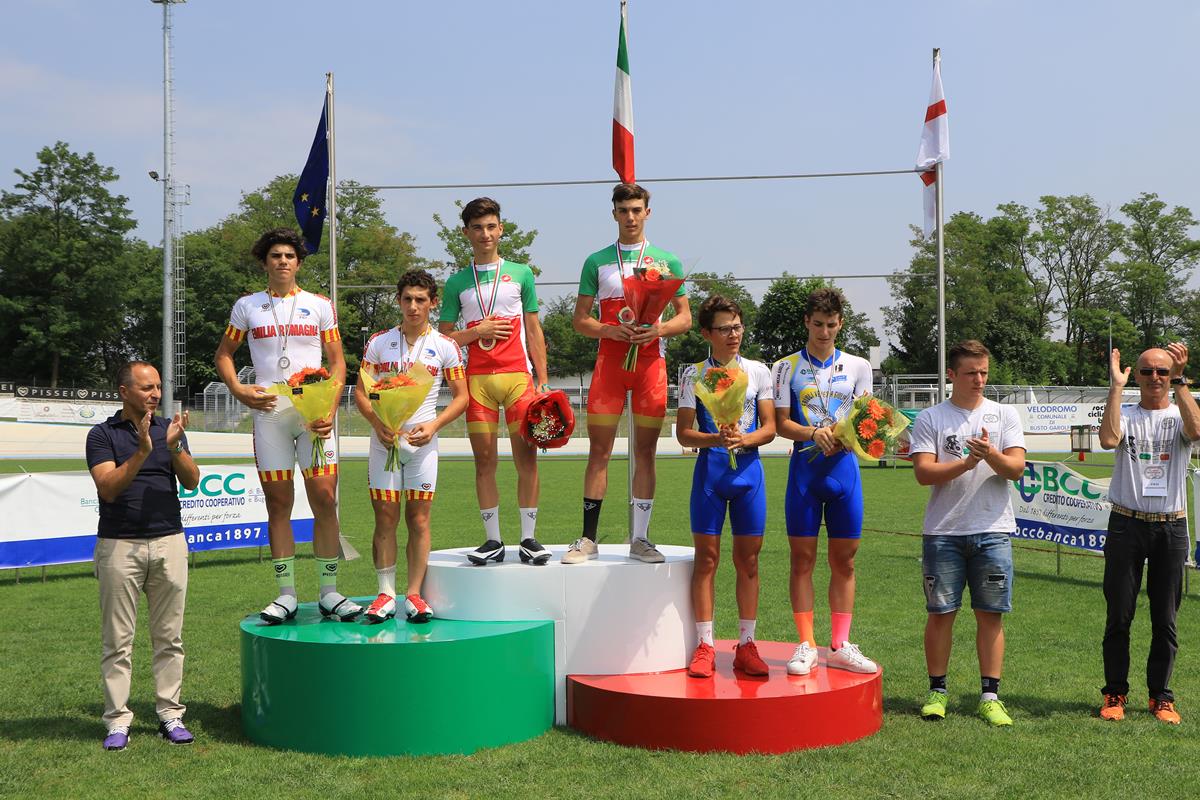 La finale della Velocità individuale Allievi premia il già plurivittorioso di stagione su strada Davide Boscaro, veneziano dell’Uc Mirano che si laurea campione d’Italia battendo in finale il toscano Francesco Della Lunga (Sc Pedale Toscano Ponticino), medaglia d’argento, mentre quella di bronzo finisce al collo del bolzanino Gabriele Zadra (Team Südtirol Asd Campana Imballag), vincitore del Keirin.