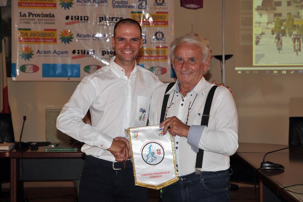 Si è poi passati all’ospite d’eccezione della serata, il neo Campione Italiano della categoria Elitè Davide Orrico, Comasco e Vincitore della maglia Ciclamino (cat. Allievi 1° anno) nel 2005 a soli 2 punti dal vincitore del giro Giacomo Nizzolo campione italiano 2016 Professionisti, e poi vincitore del giro l’anno successivo. Davide dopo aver visto il filmato delle sue vittorie di quegli anni, preparato da Angelo Gaudenzi, ha parlato dei suoi programmi per la corrente stagione.
