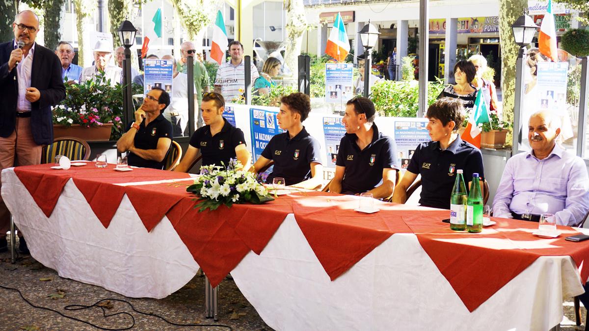 Iniziato ieri il raduno del gruppo diretto da Davide Cassani nella cittadina laziale. In mattinata Nibali, Caruso e Rosa hanno svolto un allenamento. Nel pomeriggio, dopo l’arrivo di Aru, incontro con la cittadinanza che ha espresso tutta la sua passione per la Nazionale.