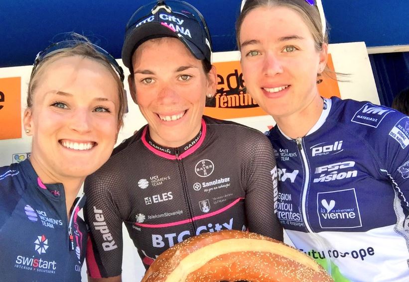 SOULTZMATT (FRANCIA) – Le strade transalpine della La Route de France hanno regalato ancora belle soddisfazioni a BePink. Nella sesta frazione partita da Plombières les Bains e approdata a Soultzmatt dopo 123,9 km la canadese Lex Albrecht si è accaparrata il secondo gradino del podio, mentre la bielorussa Ksenyia Tuhai ha centrato l’ottava piazza conquistando la Maglia Bianca di miglior Giovane. La frazione è stata vinta dalla polacca Eugenia Bujak (BTC City Ljubljana).