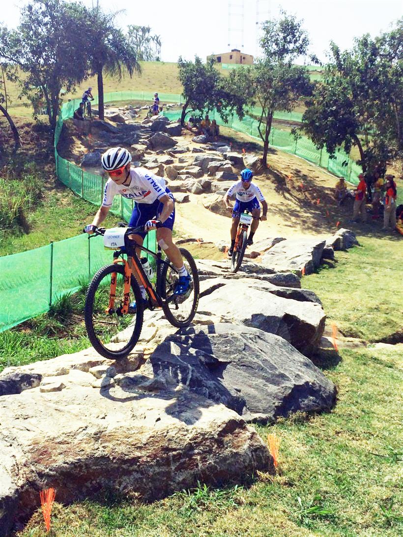RIO DE JANEIRO (BRASILE) – Eva Lechner ha pedalato ieri lungo il tracciato dell’Aquece Rio, all’interno del MTB Centre, il tempo necessario per compiere un giro e mezzo di pista, in compagnia del meccanico Simone Fabbri, e provare nuove traiettorie lungo un percorso sul quale ha già corso lo scorso anno. “Mi piace, lo trovo divertente…” ha dichiarato al termine del test di avvicinamento alla prova decisiva di oggi, quando alle 12,30 ore brasiliane (17,30 per l’Italia) si alzerà il sipario sull’ultima tranche olimpica dedicata al ciclismo, quella del cross country.