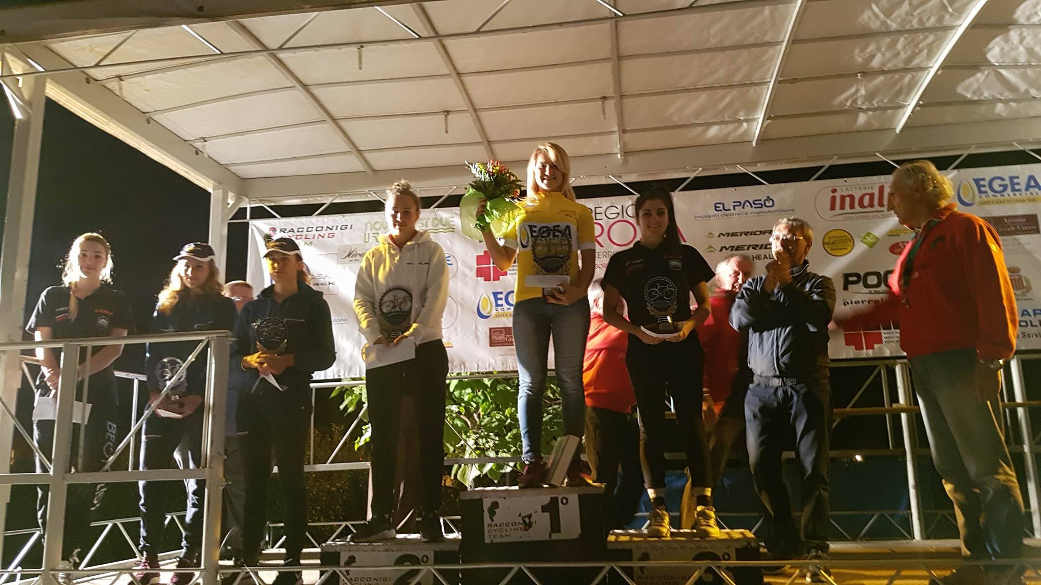 Nicole Fede adesso guida la classifica generale della Tre Giorni in Rosa con 100 punti e domani indosserà la maglia bordeaux sponsorizzata dalla compagnia assicurativa Agenzia Grande Cuneo. Gloria Scarsi è seconda, terzo posto per Giada Natali del Vo2 Team Pink.