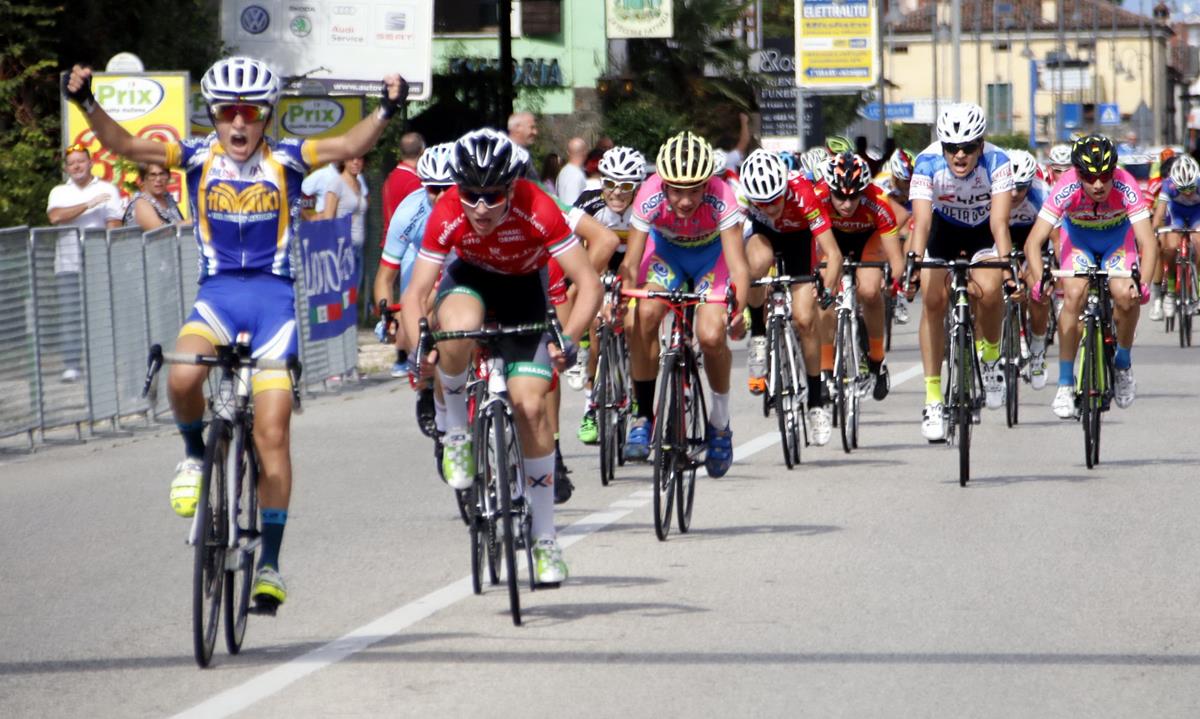 Intanto la gara continua con continui tentativi di fuga, tutti rimasti senza esito. Ma all’ultimo km scatta come una furia il veronese Riccordo Chesini che conquista un lieve margine di vantaggio sul gruppo,e quando parte la volata finale ai 300 metri, il campione veneto Matteo Consolini sembra aver partita vinta il vece riesce solo ad arrivare per un non nulla e conquista il secondo posto.Al termine una ricca premiazione sugella una bella mattinata di sport giovanile.
