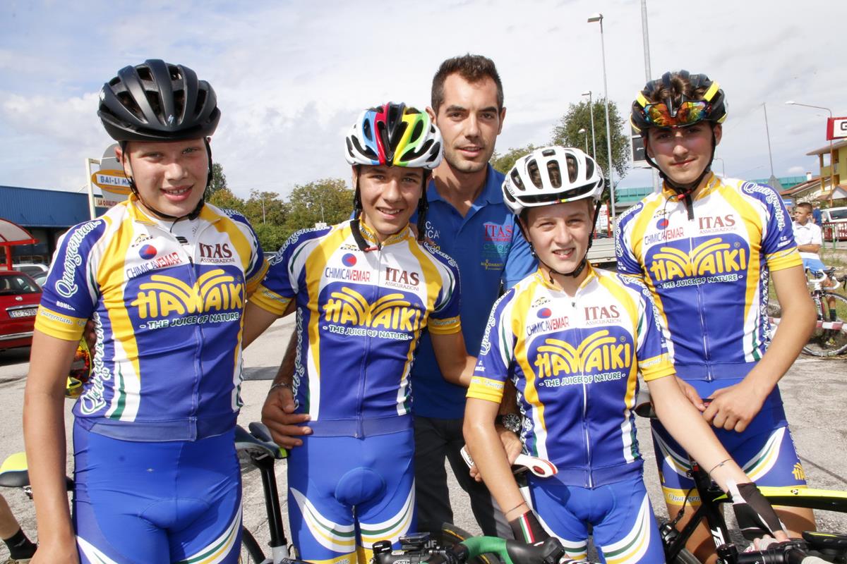 E nella volata finale, parte come un razzo Riccardo Chesini che cerca di anticipare tutti,ma in maniera inesorabile il campione veneto Matteo Consolini la batte a braccia al cielo. Subito dopo partoni i più grandicelli, e sui 4 giri del circuito locale di km 11,00 la gara si accende subito,ed in quattro si avantaggiano sul gruppo,ma i ragazzi di Allain Vedovato: Davide Bortolotto e Francesco Tescaro della società organizzatrice chiudono il buco e ricompattano il gruppo.