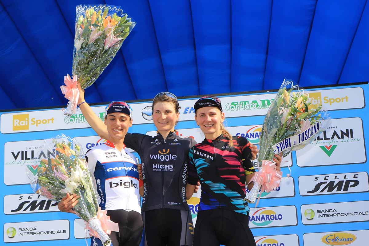 Alla Moolman risponde l’ossolana Elisa Longo Borghini (Wiggle High5) che si riporta sulla battistrada ai -500 metri. Scatta anche la scalatrice bielorussa Alena Amialiusik (Canyon Sram) che prova a riportarsi sul duo di testa. Negli ultimi metri la Longo Borghini forza l’andatura e si invola solitaria verso il traguardo. Con il secondo successo della ventiquattrenne di Ornavasso si consolida la tradizione di iscrivere nell’albo d’oro il nome di un’atleta italiana dopo il successo di Rossella Ratto nell’edizione 2014. Moolman e Amialiusik transitano nell’ordine a pochii secondi di distanza e completano il podio. Quarta la lituana Rasa Leleivyte, mentre l’olandese Anna Van Der Breggen vince lo sprint per il quinto posto sull’australiana Garfoot.