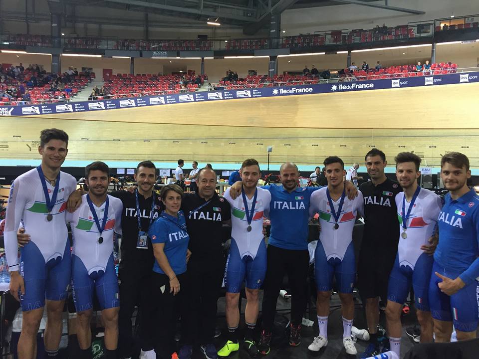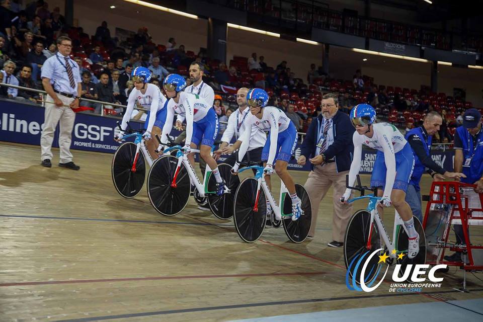 SAINT QUENTIN-EN-YVELINES (FRANCIA) – Serata storica per l’Italia al velodromo di Saint Quentin-en-Yvelines, in Francia. Per la prima volta due quartetti azzurri dell’inseguimento a squadre accedono alla finale oro-argento con il miglior tempo.