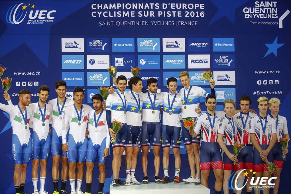 3 Italia (Bertazzo Liam Consonni Simone Lamon Francesco Scartezzini Michele) 3’57”564 – Danimarca (Von Folsach Casper ,Pedersen Casper Phillip, Madsen Frederik Rodenberg, Larsen Niklas) 3’59”334