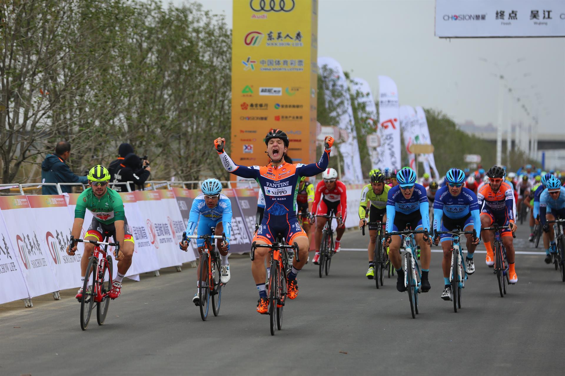 WUJIANG (CINA) – Dopo una serie di piazzamenti raccolti negli ultimi giorni, Nicolas Marini (Nippo – Vini Fantini) riesce a battere in volata Jakub Mareczko (Wilier Southeast) e vince la quarta tappa del Tour of Taihu Lake, corsa sulla distanza di 117,4 chilometri con partenza e arrivo a Wujiang. Il ventitreenne bresciano ha centrato la sua terza vittoria stagionale.
