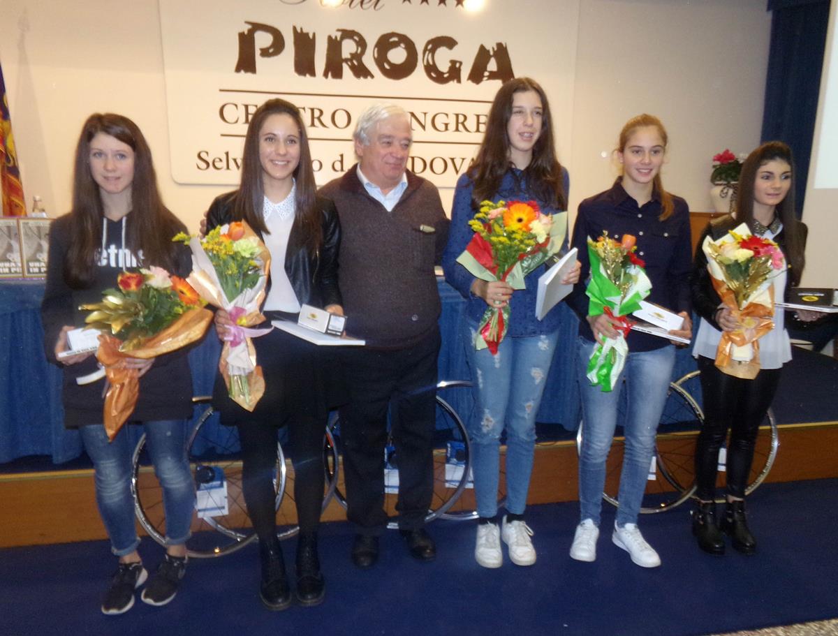SELVAZZANO DENTRO (PD) – Parata dei campioni del ciclismo sabato pomeriggio all’Hotel Congress Center Piroga di Selvazano Dentro, in provincia di Padova, in occasione della cerimonia di fine anno per le premiazioni degli atleti e delle società del ciclismo veneto. Un appuntamento tradizionale che ha inteso passare in rassegna quelli che sono stati i principali risultati ottenuti nel 2016 dalla regione tra le più importanti esistenti in Italia.