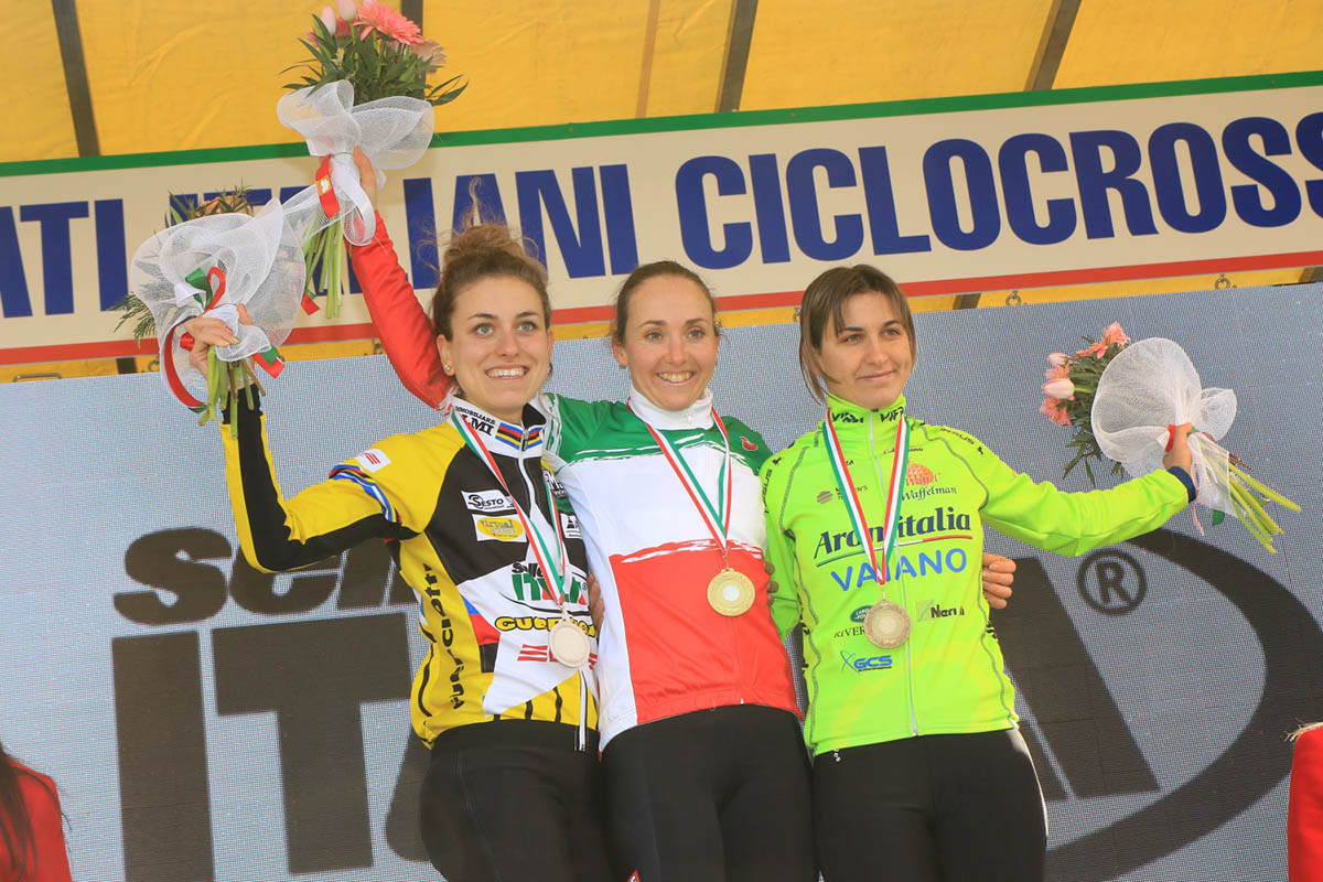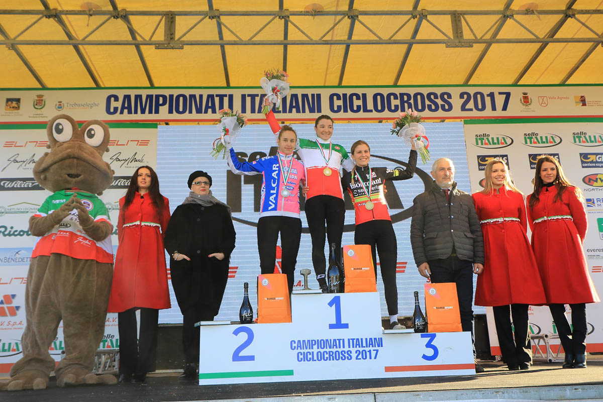 Da sinistra: Teocchi (U23), Lechner (Elite) e Baroni (Junior) campionesse italiane ciclocross 2017 (foto Fabiano Ghilardi)