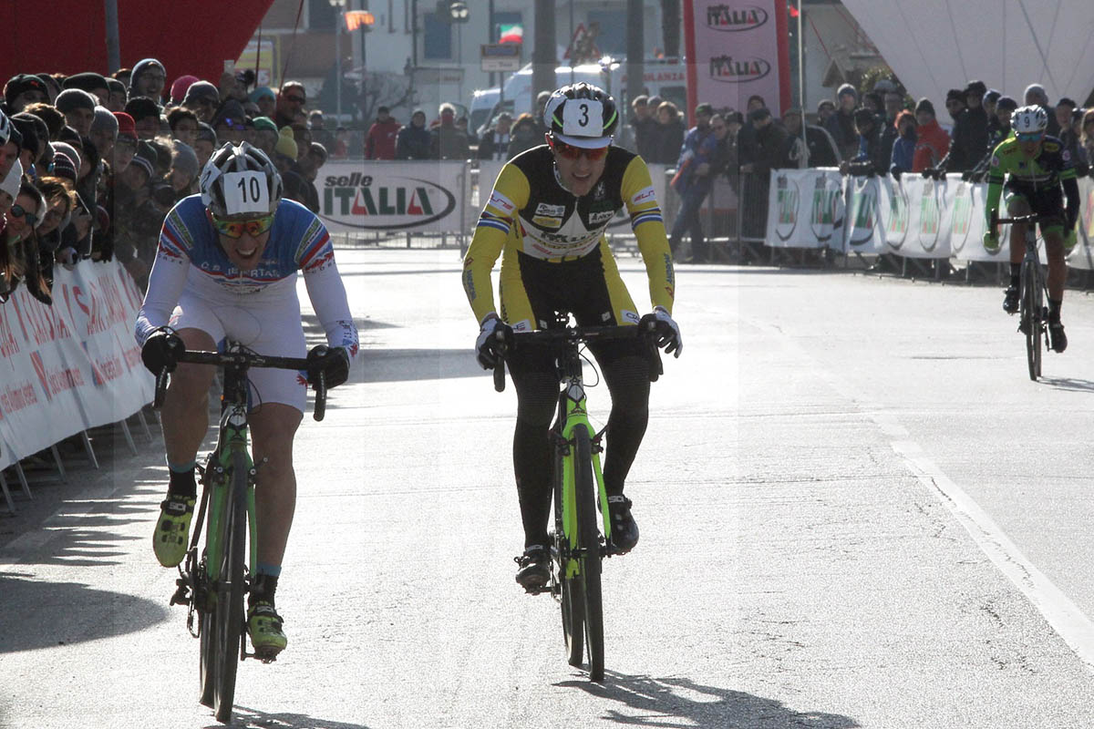 Parte a razzo il brianzolo Lorenzo Calloni (Selle Italia – Guerciotti – Elite) già al comando dopo la prima curva e che incute un ritmo forsennato alla gara sin dalle prime pedalate. L’unico a tenergli testa è proprio il veneto Filippo Fontana. Il tandem si avvantaggia e dietro si accende la lotta anche tra gli inseguitori. Nella seconda tornata una caduta taglia fuori dai giochi lo sfortunato Calloni, non può far altro che approfittarne Fontana per allungare ulteriormente e staccare inesorabilmente tutti gli avversari.