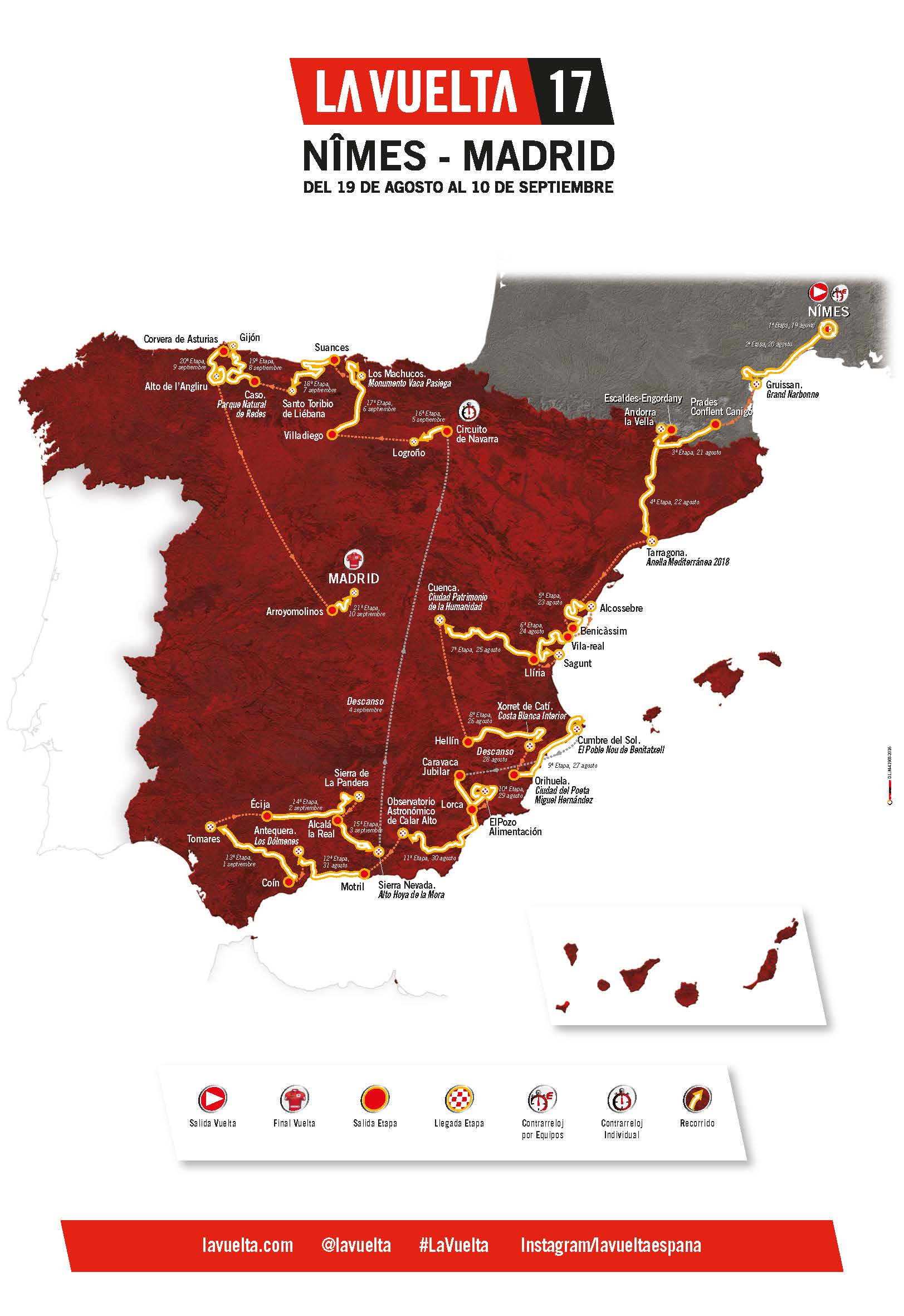 MADRID (SPAGNA) – Questa sera Unipublic ha annunciato il percorso della La Vuelta 2017, che inizierà il 19 agosto con una cronometro a squadre nella località francese di Nîmes, nota come la “Piccola Roma” per la forte presenza di elementi che richiamano alla presenza passata dell’Impero Romano. Per la terza volta in oltre 80 anni di storia, la corsa a tappe spagnola scatterà da una località estera dopo Lisbona nel 1997 e Assen nel 2009.