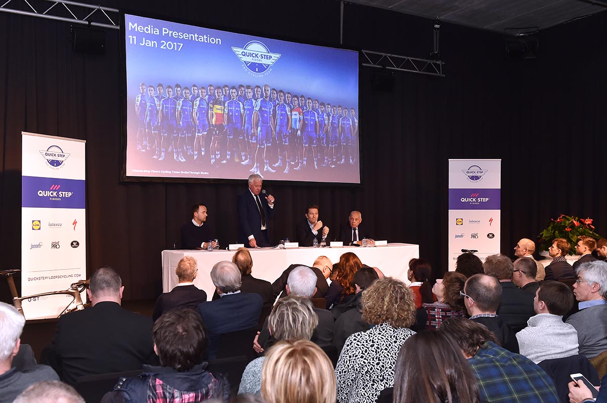 “Intraprendiamo la nostra quindicesima stagione e ciò mi rende ancora più orgoglioso nel presentare la nuova squadra davanti ad un pubblico così numeroso. Il 2016 è stato un anno straordinario, che mi ha reso molto felice, ma non ci vogliamo fermare”, sono state le parole di Patrick Lefevere, CEO di Quick-Step Floors Cycling Team e creatore di questo team 15 anni fa. “Ad essere sincerò non sarà importante se si tratterà di una corsa singola o di un Grande Giro, ma vogliamo sempre dimostrare la nostra aggressività, il nostro spirito di gruppo e la voglia di vincere. Il Campionati del Mondo saranno uno dei grandi obbiettivi. Andremo in Norvegia con l’intenzione di difendere il nostro titolo della cronosquadre conquistato in Qatar e allo stesso tempo spero che qualcuno dei nostri ragazzi possa conquistare la maglia iridata”.