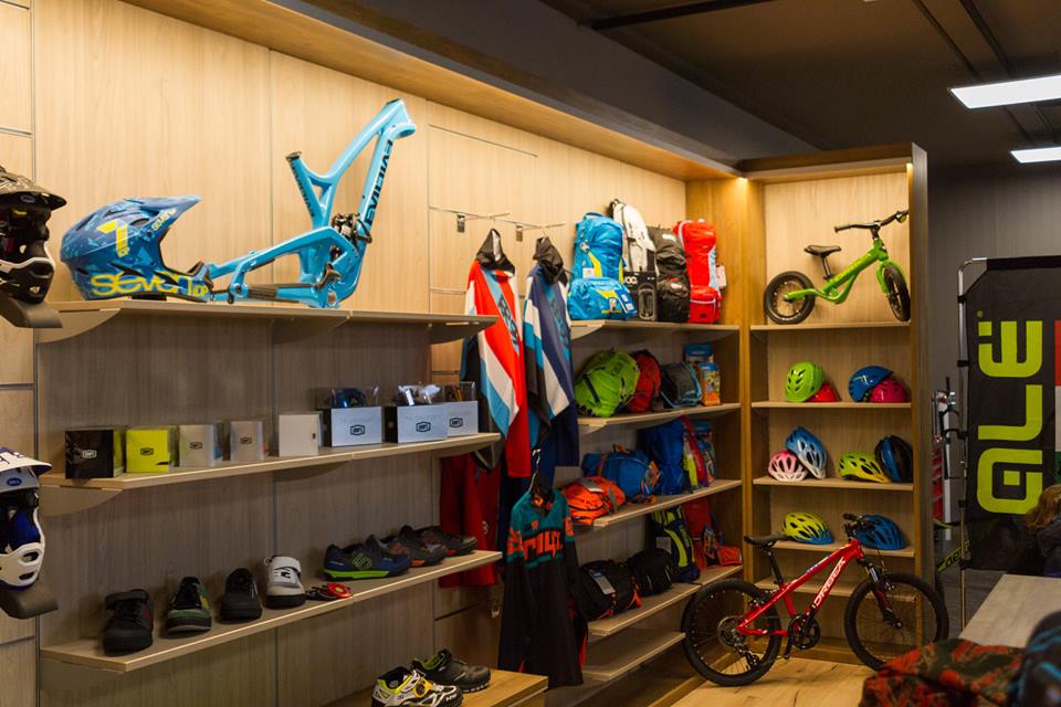 È il primo negozio nella zona pensato appositamente per gli amanti della MTB, ma non solo, e anche il suo allestimento interno è qualcosa di unico e particolare che richiama questo ambiente. “Pensando al mondo dell’off road abbiamo messo nel negozio elementi che richiamassero l’idea del bosco, quindi il ponte, il legno, i tronchi per caratterizzarne l’arredamento e l’impatto visivo sui clienti”, spiega il titolare.