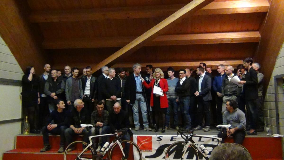 Riuniti in una sala e poi su un palco c’erano uomini ed atleti che rappresentano 62 anni di storia del Team Palazzago, 37 anni di carriera da direttore sportivo per Olivano Locatelli. Oltre 600 vittorie, una trentina di corridori lanciati al mondo del professionismo, 7 titoli mondiali, 4 titoli europei, 3 Coppe del Mondo su strada e una su pista, 2 Olimpiadi.