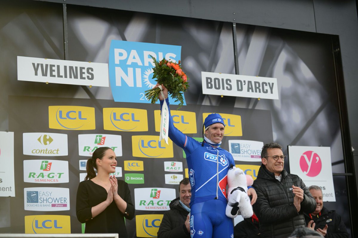 BOIS-D’ARCY (FRANCIA) – Arnaud Démare (FDJ) è la prima maglia gialla della Parigi-Nizza 2017 dopo la bella vittoria ottenuta oggi sul traguardo di Bois-d’Arcy, dove si è conclusa la prima tappa di 148,5 chilometri, con il duello tra il velocista francese e il connazionale Julian Alaphilippe (Quick-Step Floors) col quale si era avvantaggiato nel finale.